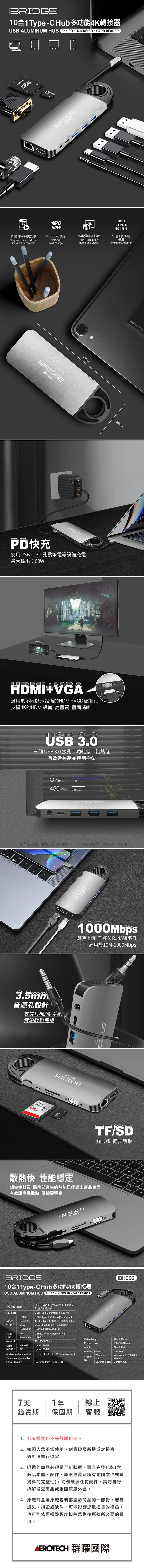 iBRIDGE 10合1 Type-C Hub 多功能4K轉接器