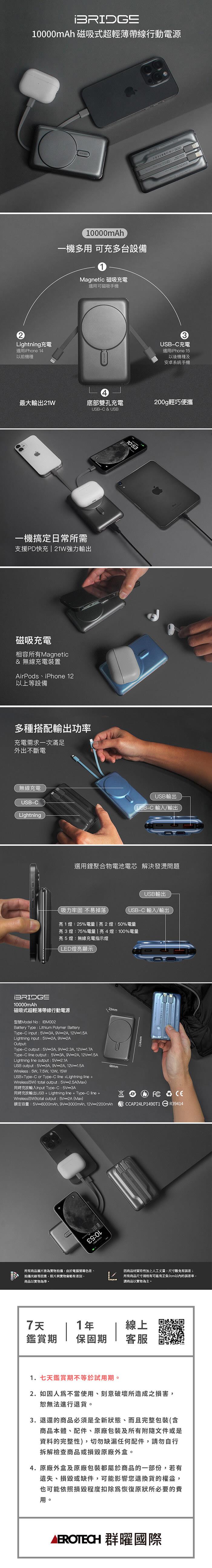 iBRIDGE 10000mAh 磁吸式超輕薄帶線行動電源