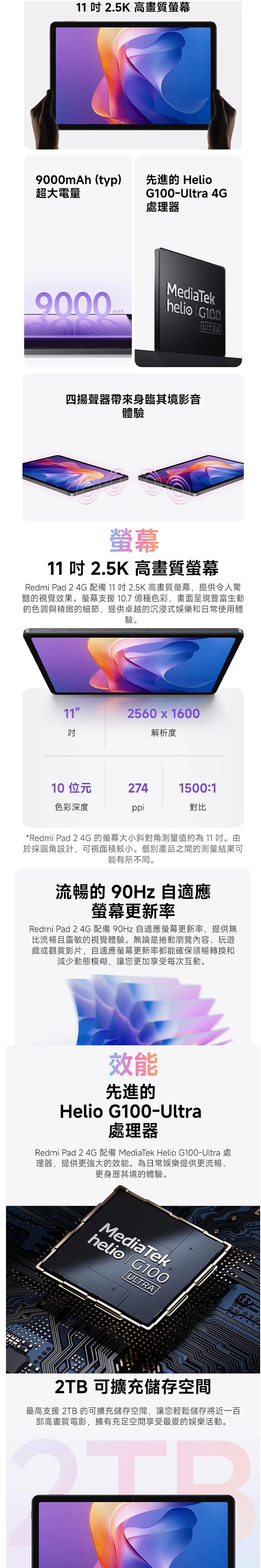 紅米 Redmi Pad 2 4G (8G/256G/LTE)影音智慧平板