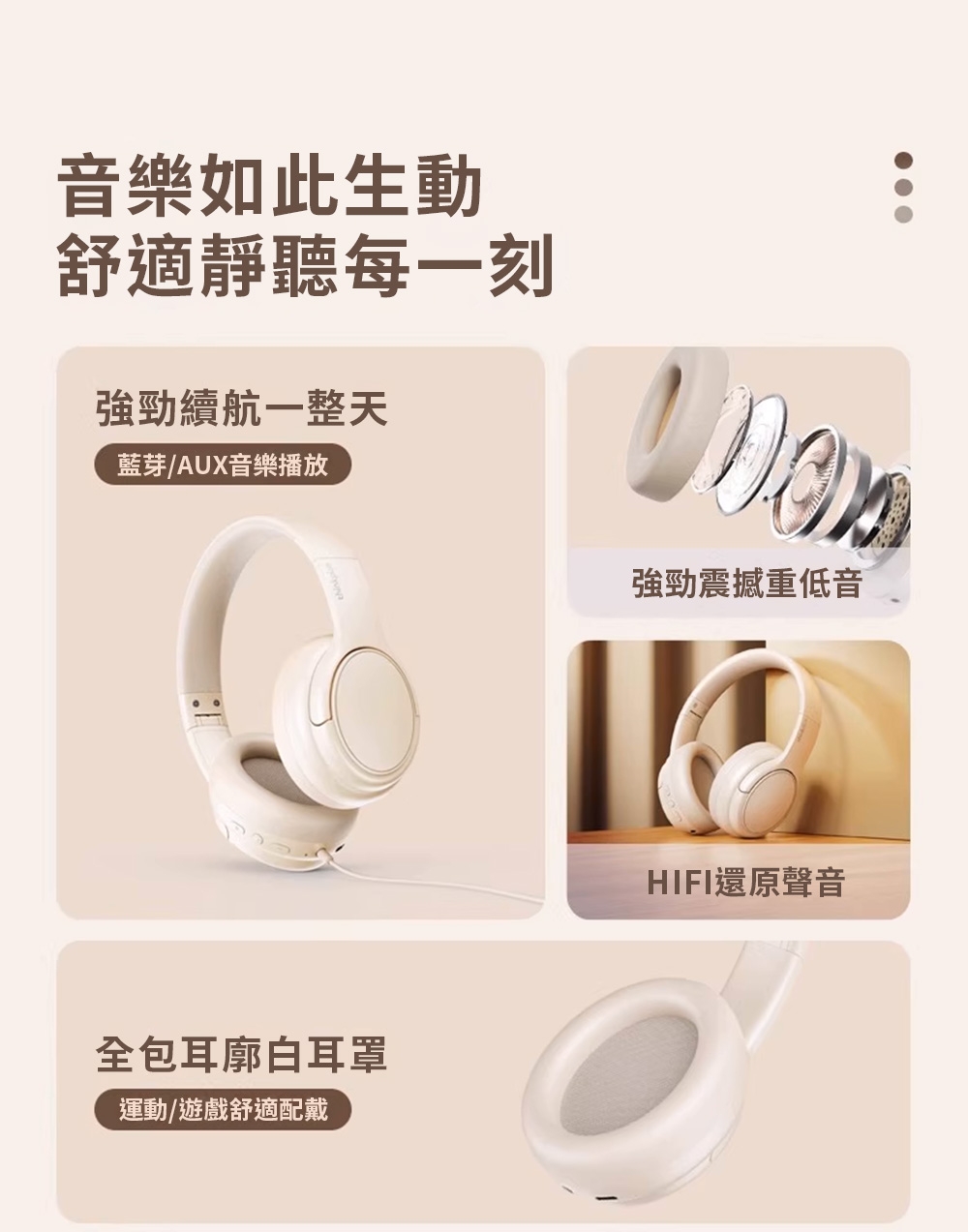 頭戴式舒適貼耳體驗 沉浸式音感清晰語音通話 還原聲音的本質
