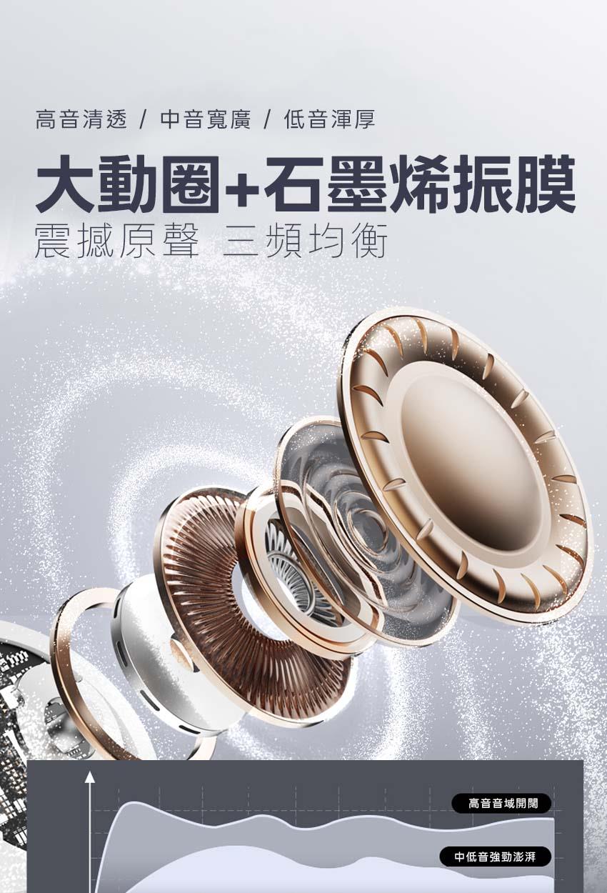 採用超越同級真銅環之多層複合振膜,單體能維持清晰音質下同時強化低音表現。