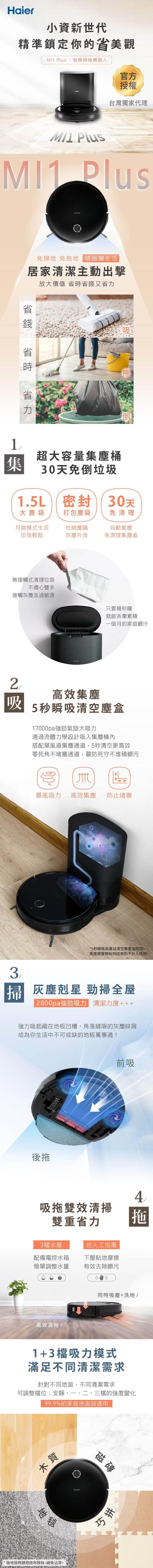 【Haier 海爾】掃拖合一 自動集塵掃拖機器人 (MI1 Plus)