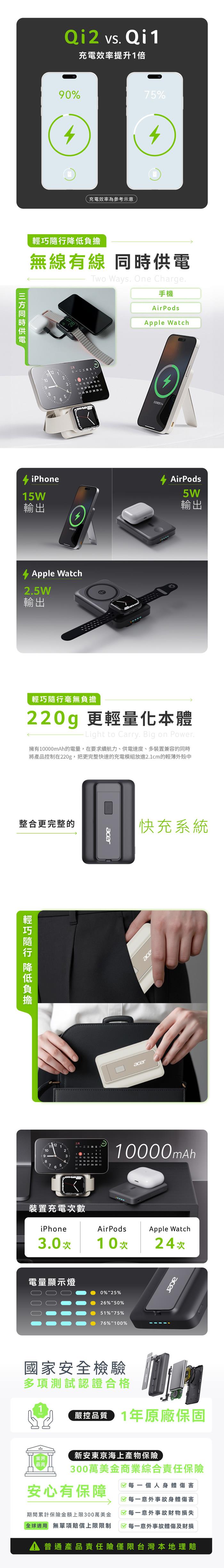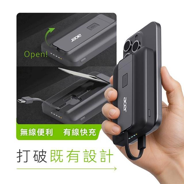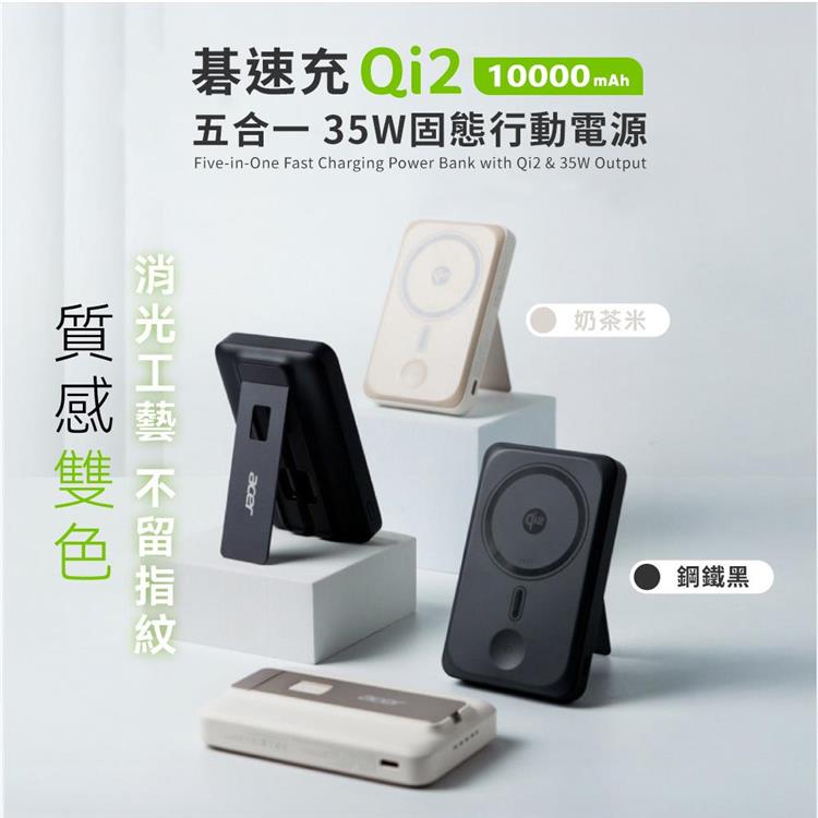 【Acer宏碁】碁速充 Qi2 五合一 35W固態行動電源10000mAh(P-187)