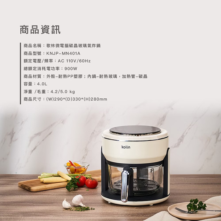 【Kolin 歌林】微電腦碳晶玻璃氣炸鍋(KNJP-MN401A)