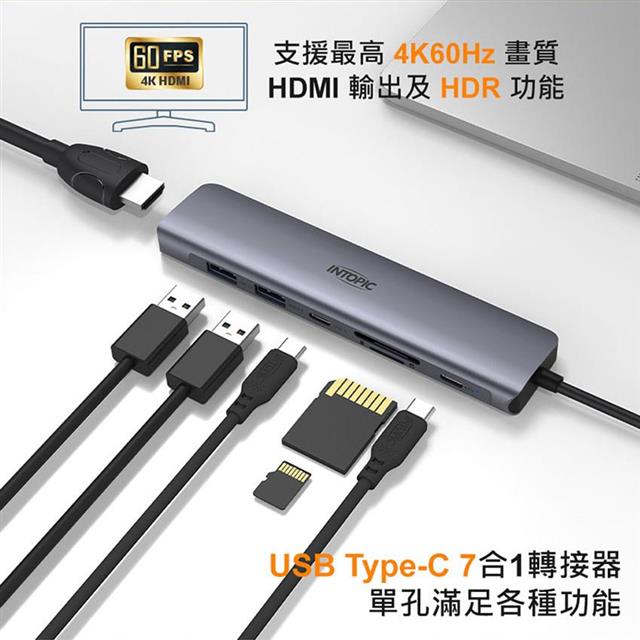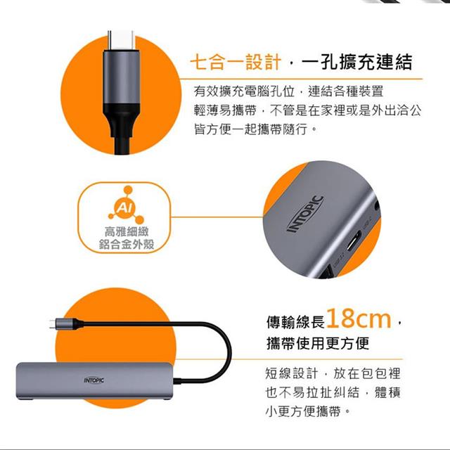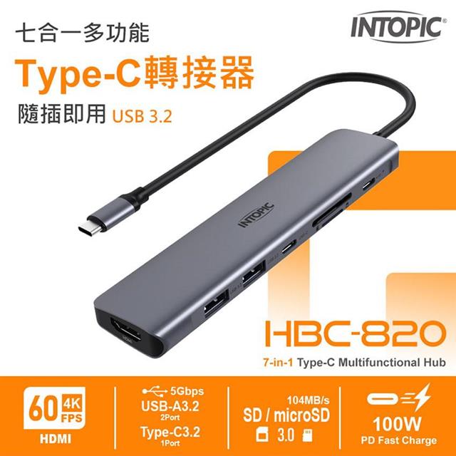 INTOPIC 廣鼎 七合一多功能Type-C轉接器(HBC-820)