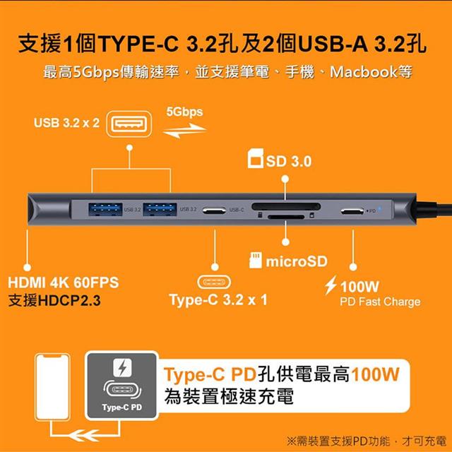 》USB Type-C 7合1轉接器,單孔滿足各種功能