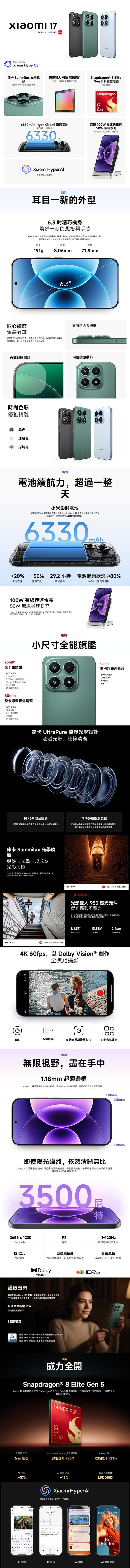 小米 Xiaomi 17 (12G/256G)徠卡防水5G旗艦機※送支架+內附保護殼※