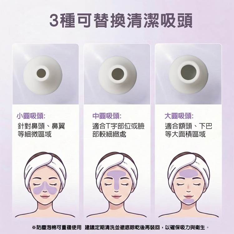 三種可替換清潔吸頭, 自由選用