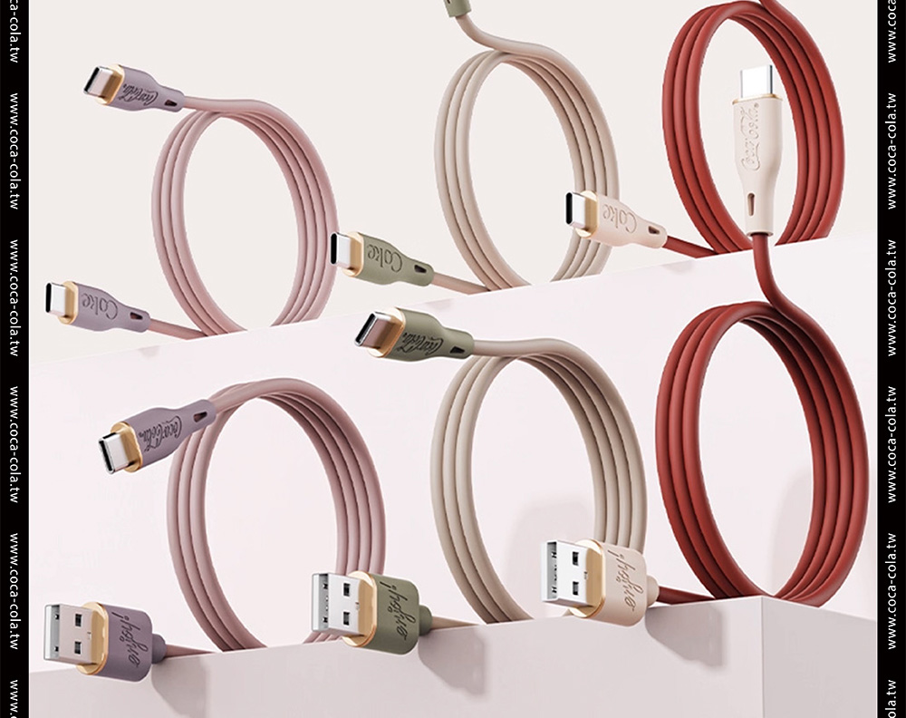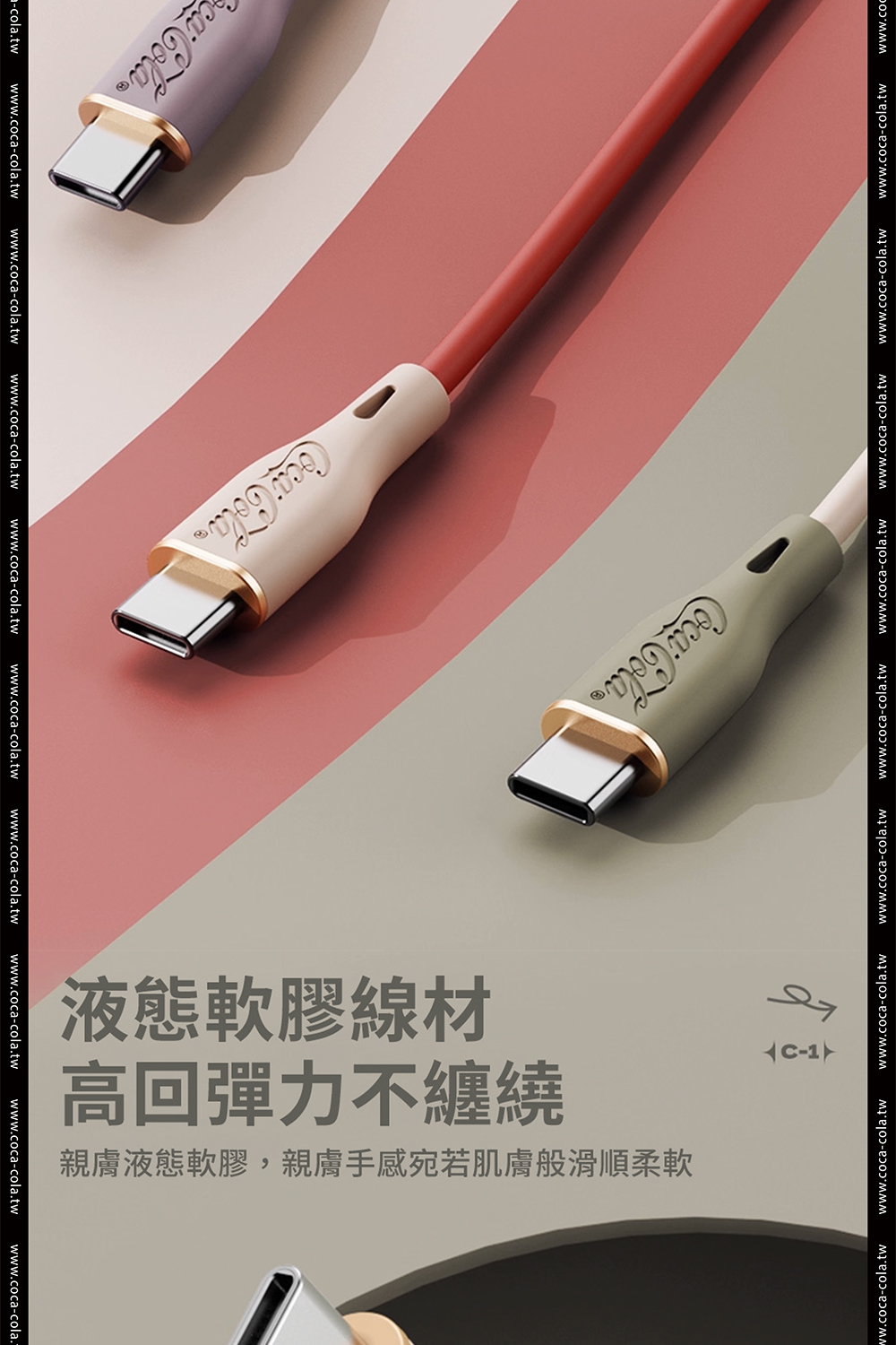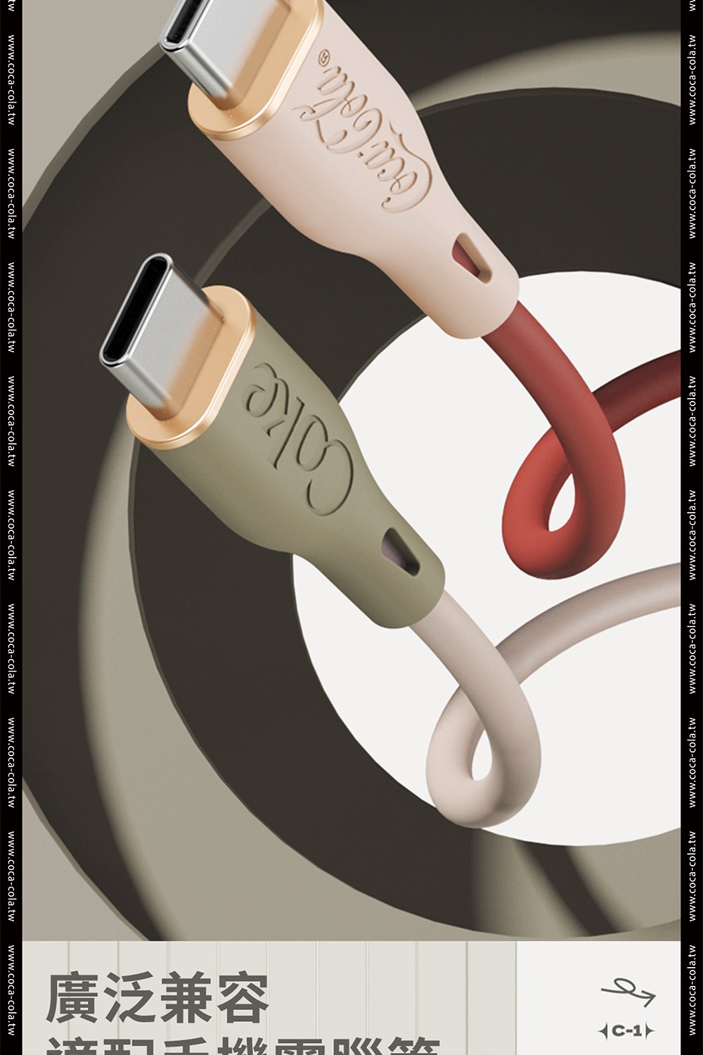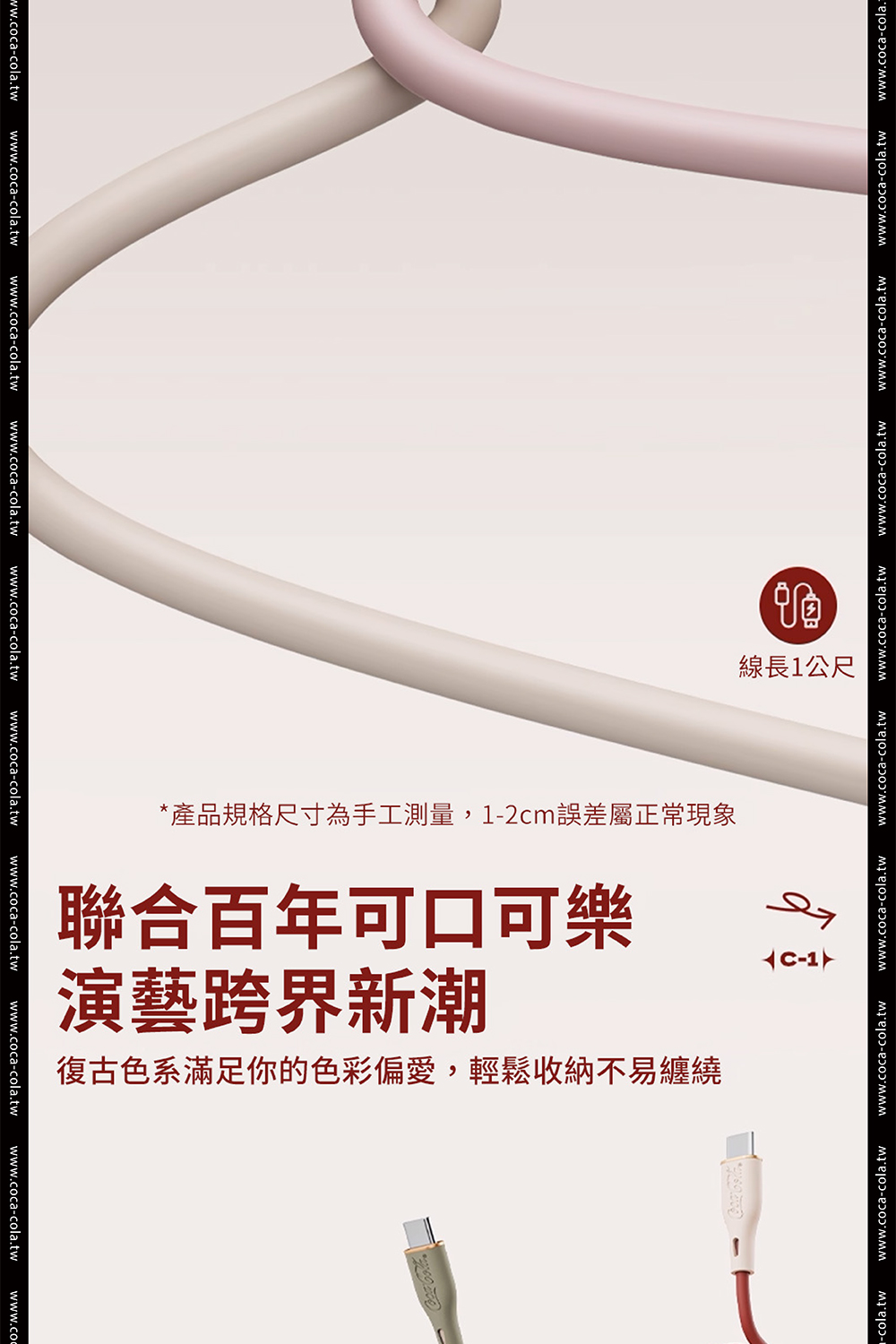 【Coca-Cola 可口可樂】經典復古色Type-C雙頭快充傳輸線 C-1