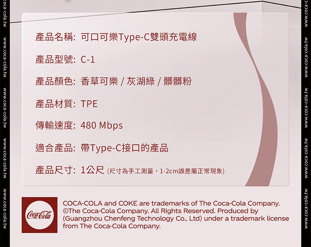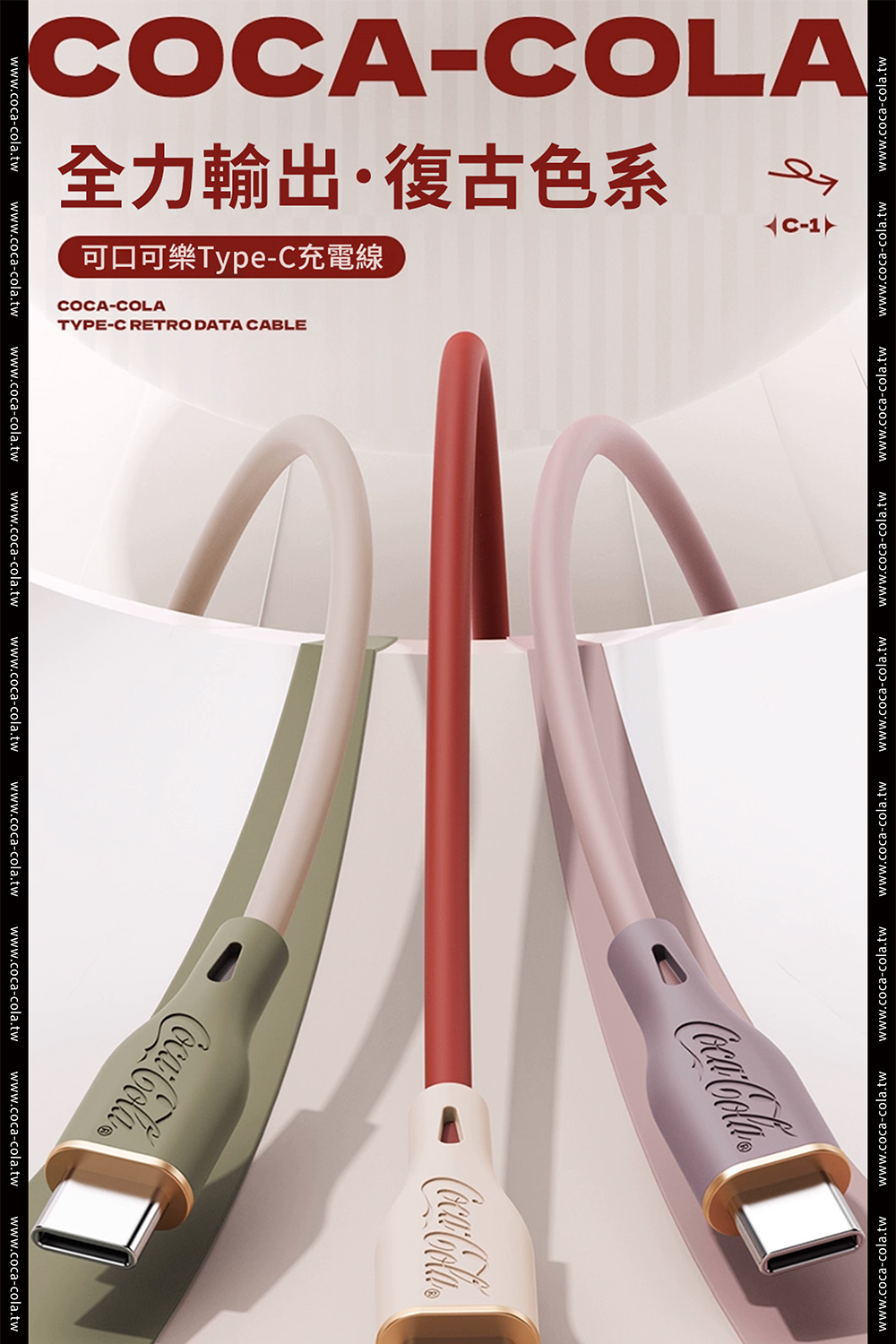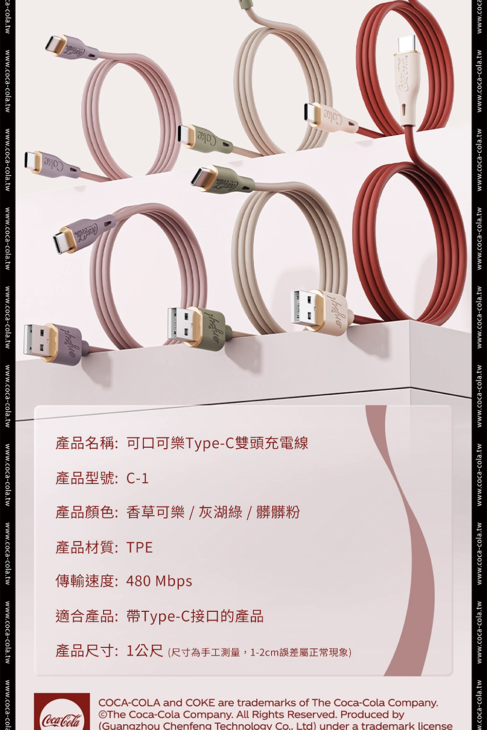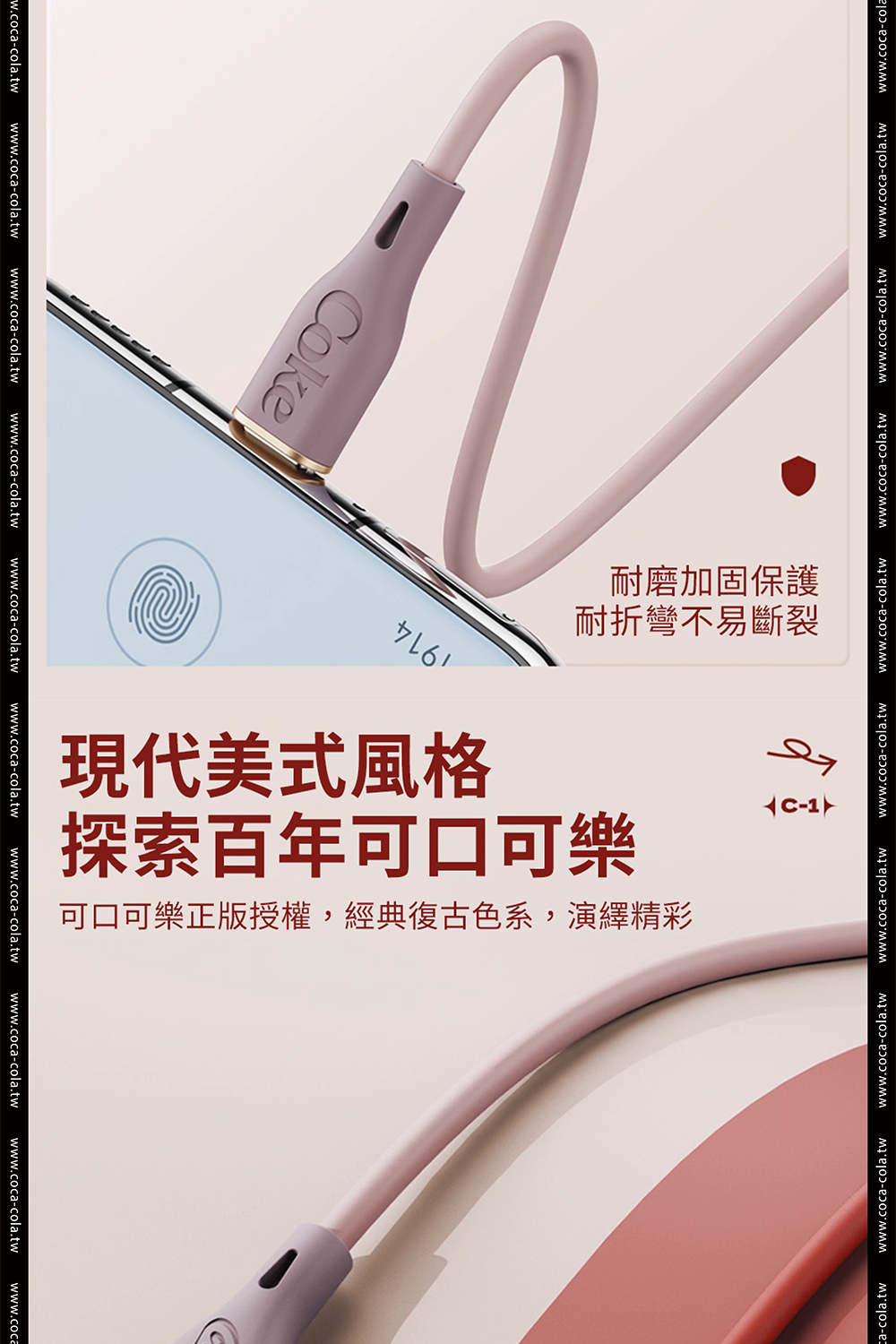 【Coca-Cola 可口可樂】經典復古色Type-C雙頭快充傳輸線 C-1
