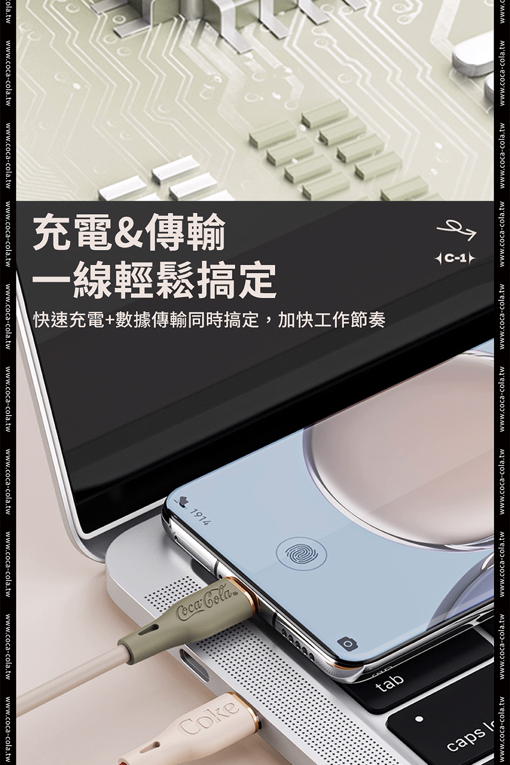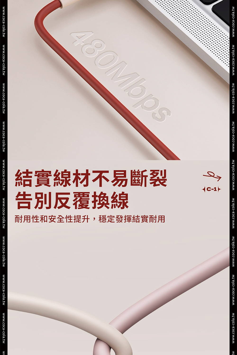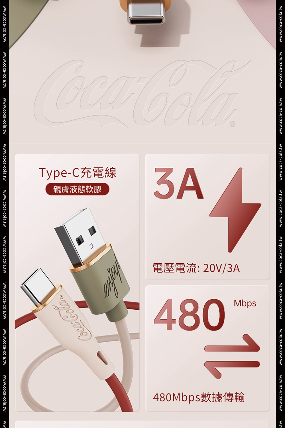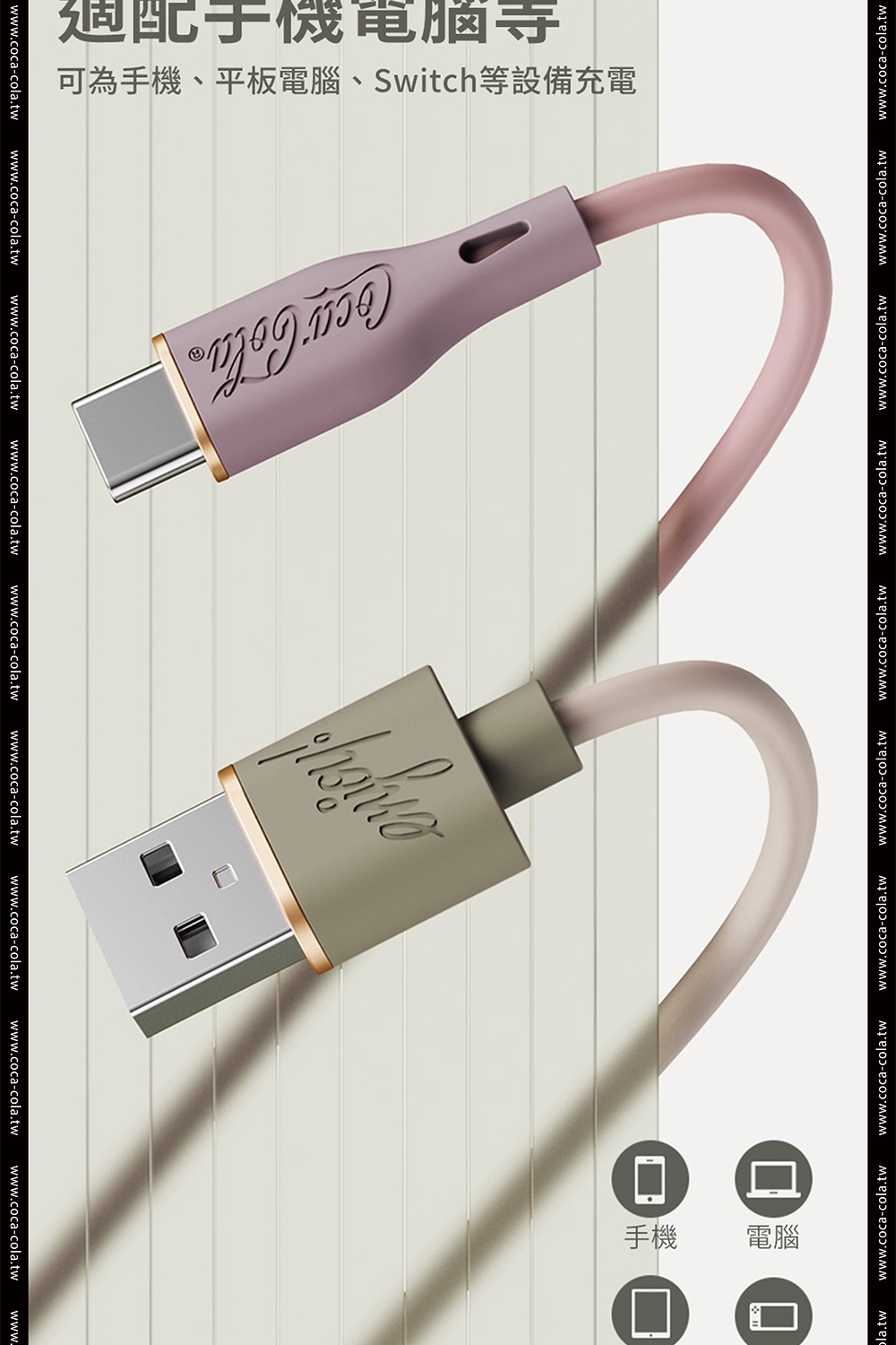 【Coca-Cola 可口可樂】經典復古色Type-C雙頭快充傳輸線 C-1