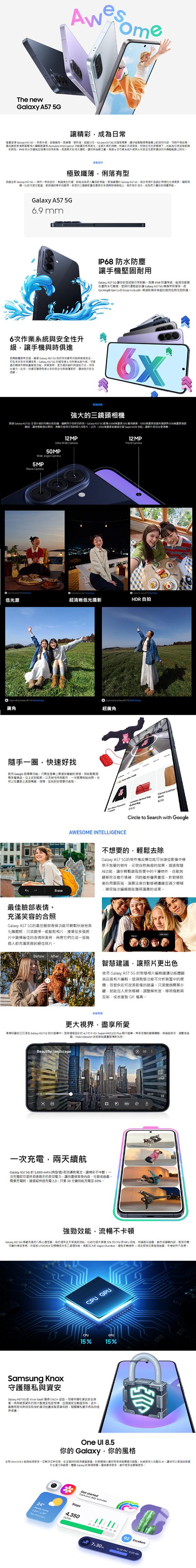 ◎搜尋圈、物件橡皮擦、濾鏡、智慧相片編輯建議、AI智慧選取、朗讀重點內容、Awesome Intelligence智慧技術、轉錄助理