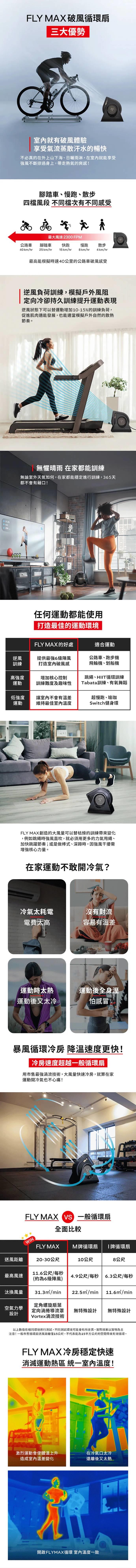 健身房與室內冷房雙用途,適合高強度運動環境使用 搭配最強6級陣風設計,提供接近室外騎行的強勁風阻感受
