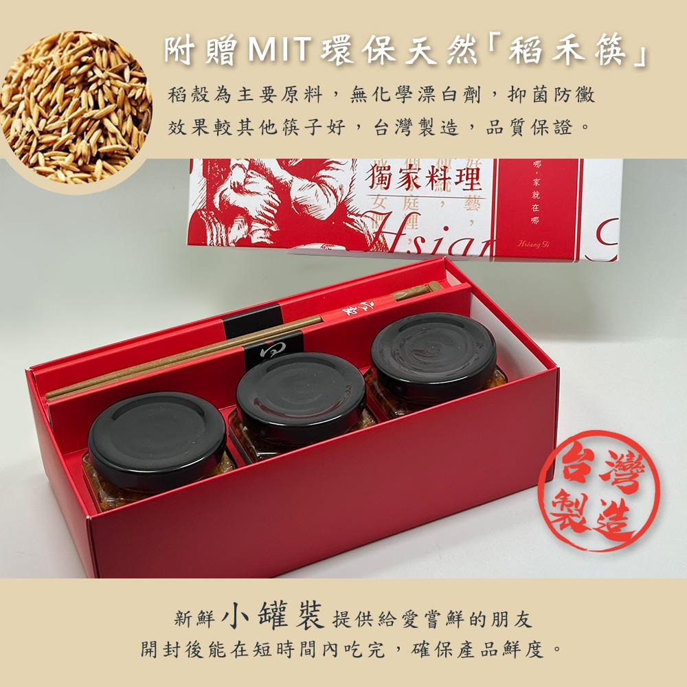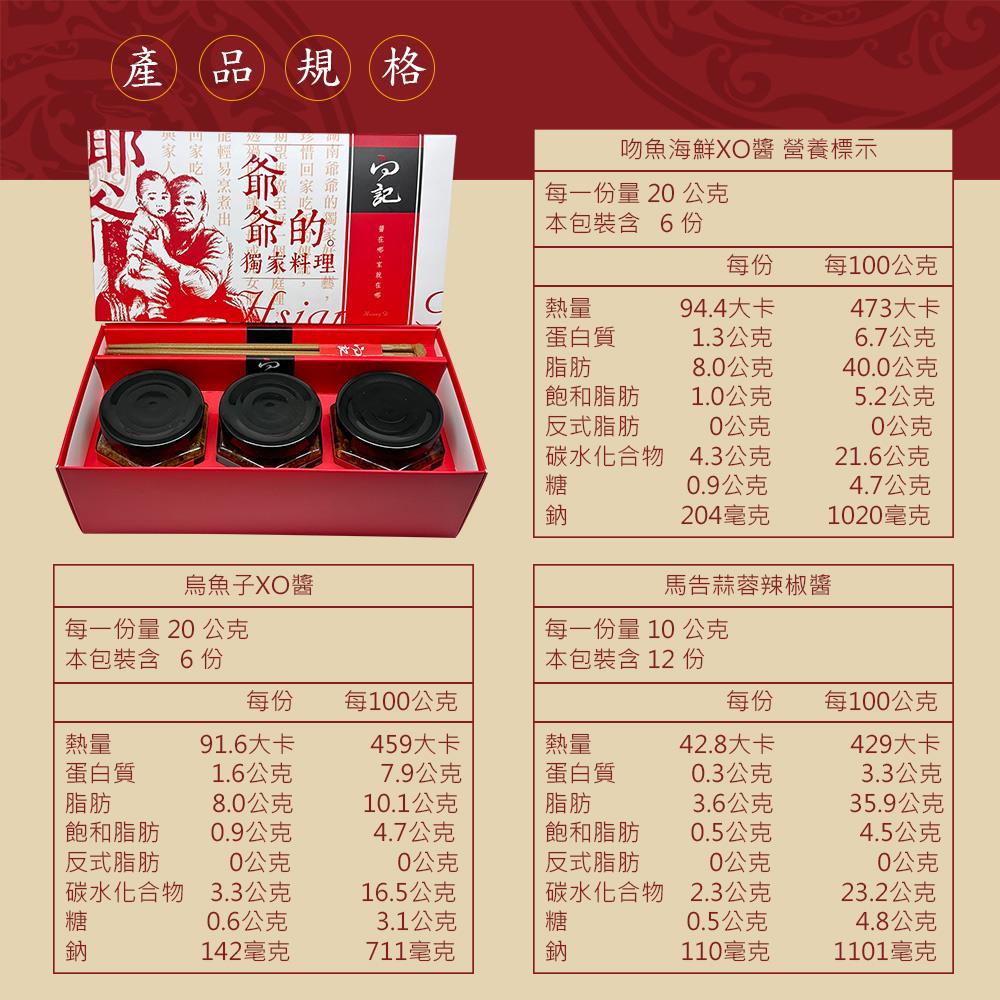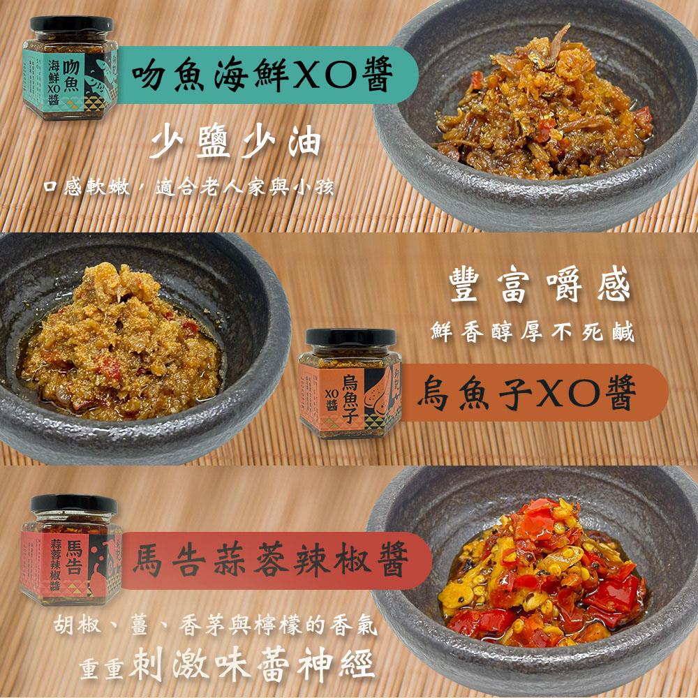 (吻魚海鮮XO醬+烏魚子XO醬+馬告蒜蓉辣椒醬)