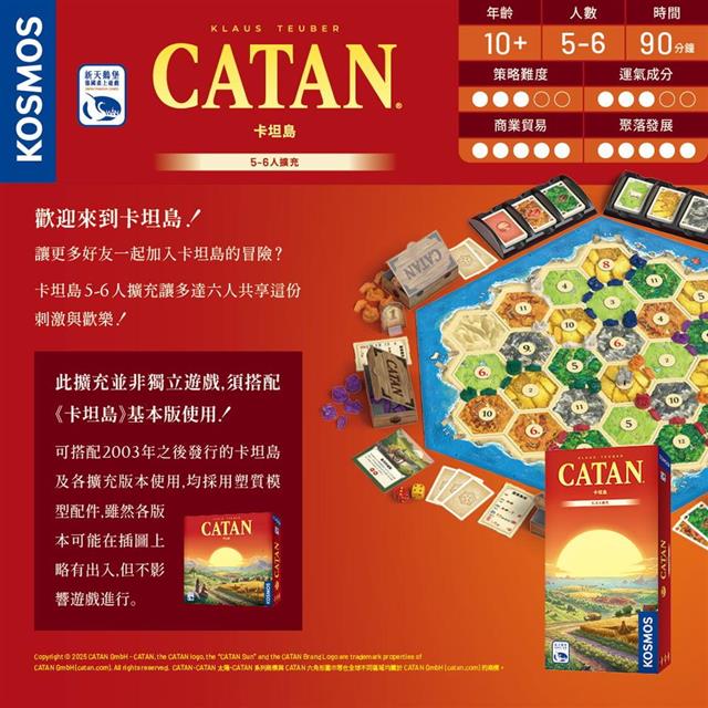 卡坦島5-6人擴充讓多達六人共享這份刺激與歡樂!讓更多人一起玩卡坦島!