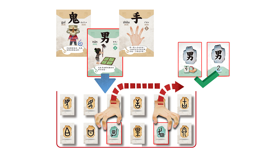 遊戲中,我們即將面對最熟悉卻又最陌生的「正楷中文」、「甲骨文」以及「金文」,來考驗玩家們的國學常識。到底,我們能不能夠透過對於現代文字的理解,配合造字法則的運用,成功的將古文字與楷書給配對成功呢?