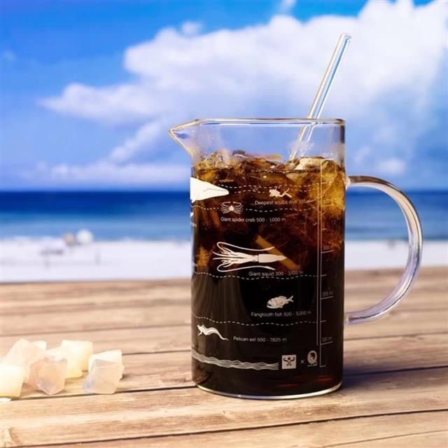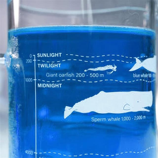 杯身印有根據真實海洋深度和生物棲息環境設計的分佈圖,