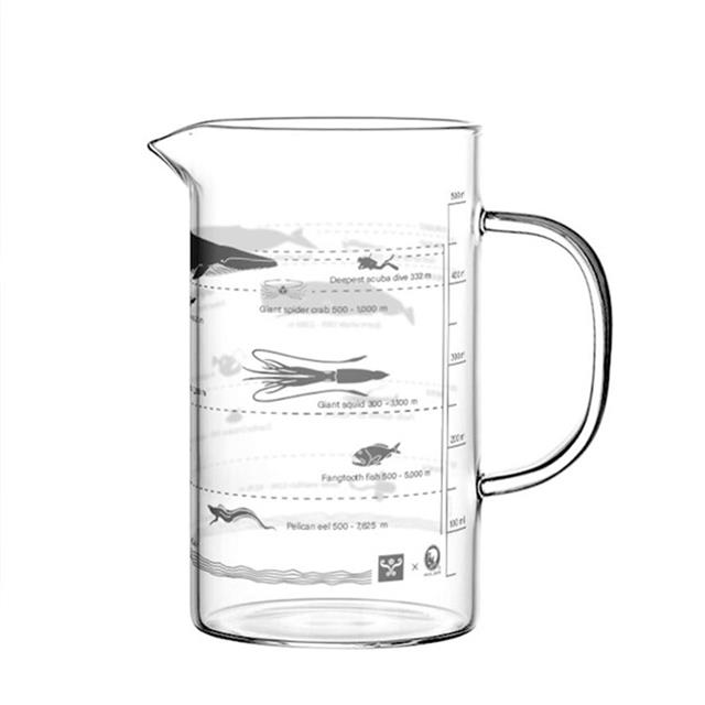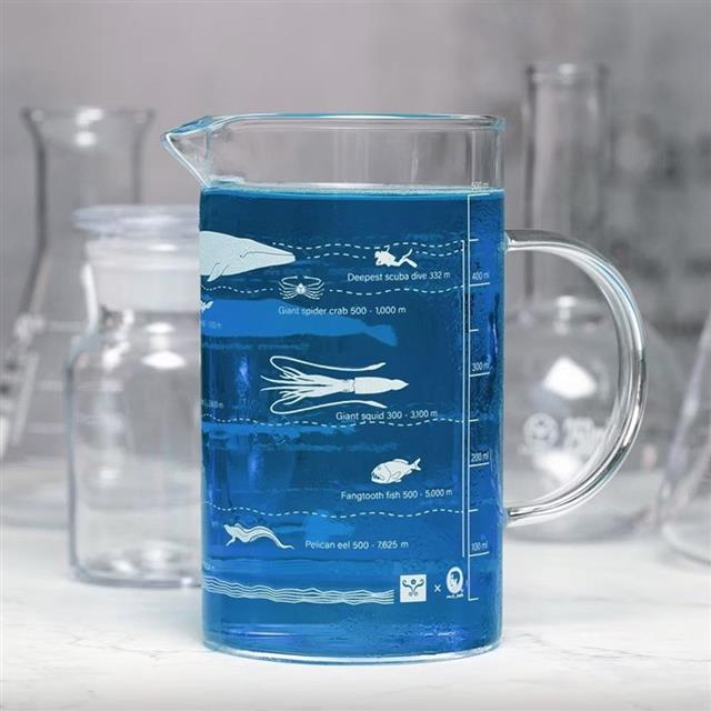 科學美學結合實用生活,500ml高硼矽玻璃燒杯,清晰印製海底生物分布圖。 耐高溫安全材質,兼具實驗室質感與日常使用,科學迷必備!