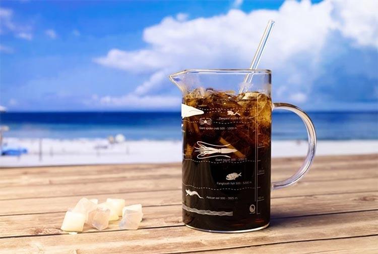 杯身印有根據真實海洋深度和生物棲息環境設計的分佈圖,