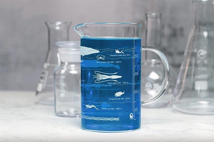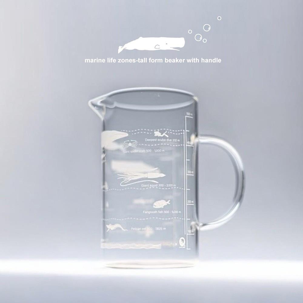 科學美學結合實用生活,500ml高硼矽玻璃燒杯,清晰印製海底生物分布圖。 耐高溫安全材質,兼具實驗室質感與日常使用,科學迷必備!