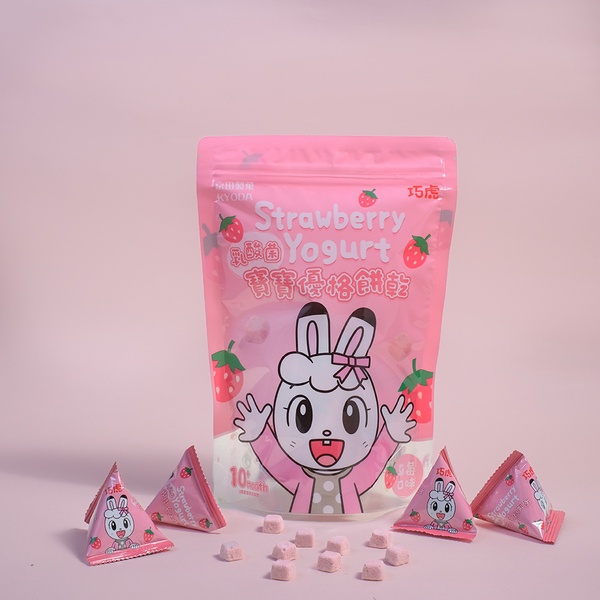 成分: 草莓、食用玉米澱粉、優格(牛奶、乳酸菌Lactobacillus rhamnosus)、蘋果、乳酸菌(Lactobacillus