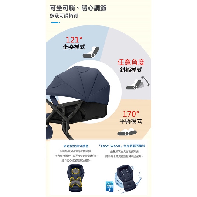 【Aprica 愛普力卡】雙向自動四輪推車 RUNRUN(深海藍/夢幻灰)|卡多摩