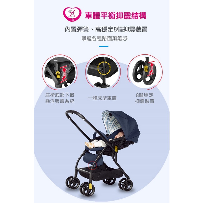 ✔️車體平衡抑震結構減緩震動,實現爸媽超優推行手感!