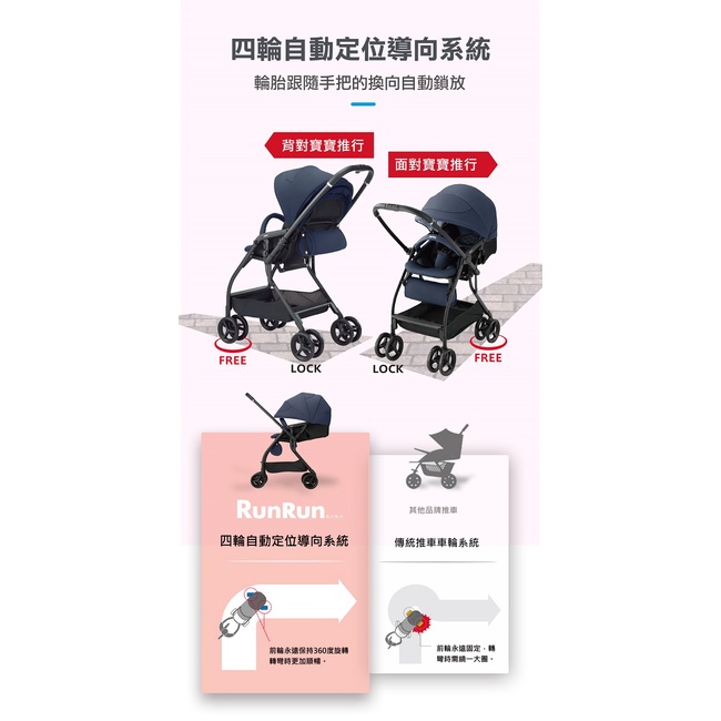 ✔️四輪自動定位導向系統,享受推行順暢感;