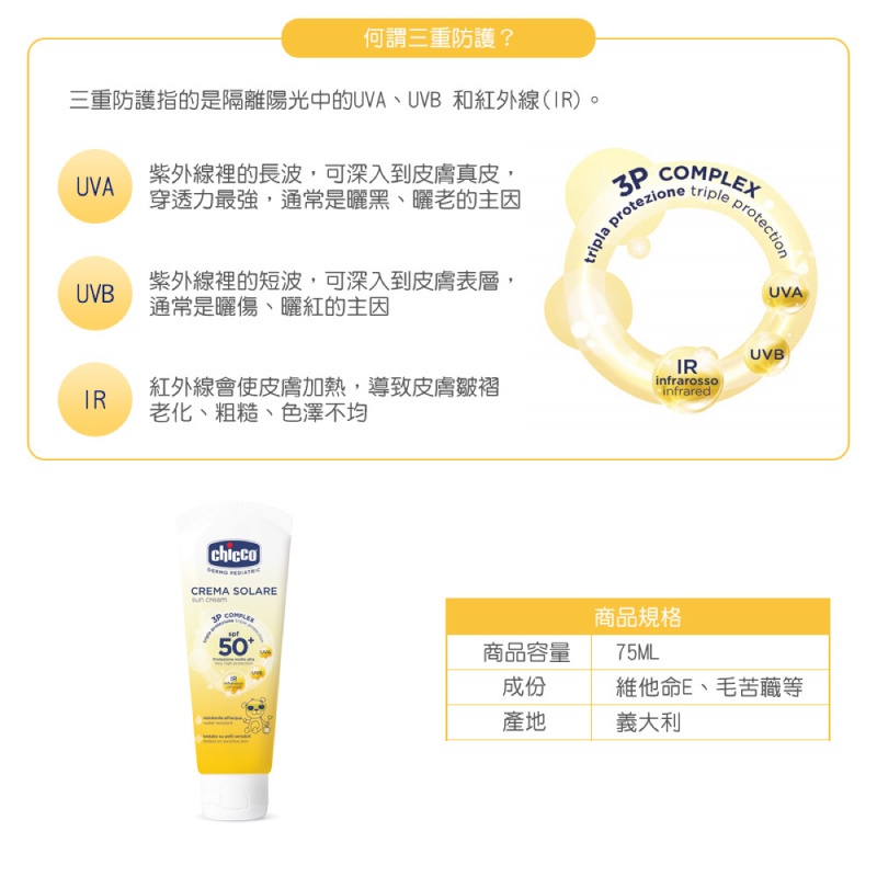 👍三重防護 添維他命E等保濕修護成分,防曬同時也兼具保濕及修護