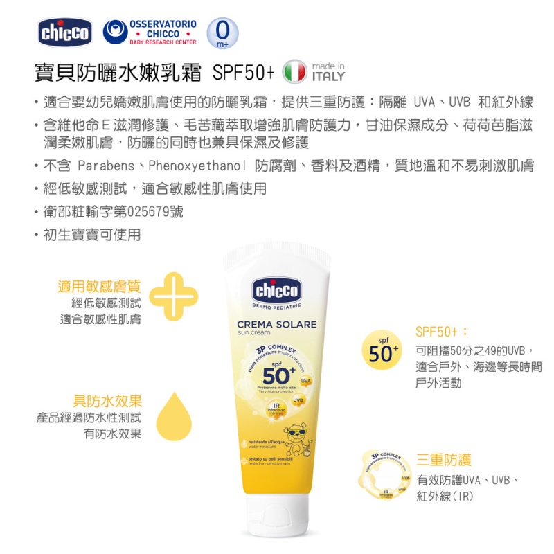 【Chicco】寶貝防曬水嫩乳霜SPF50+ (75ML)|卡多摩