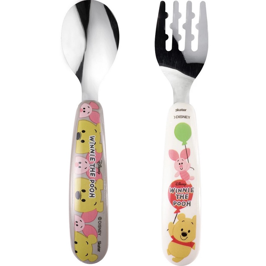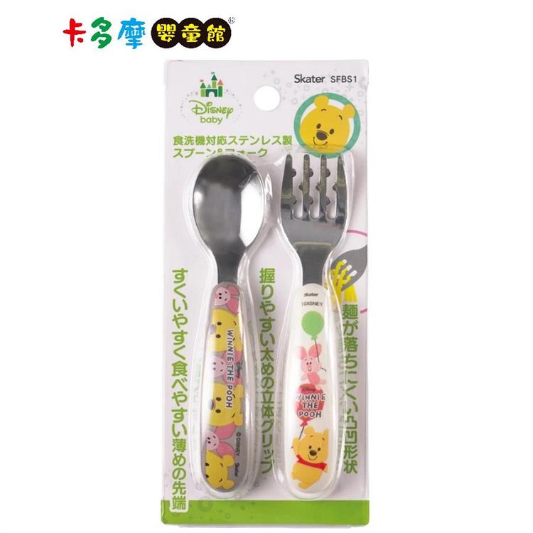【Skater】Disney 維尼 不銹鋼兒童灣柄湯匙叉組 不銹鋼餐具 兒童餐具|卡多摩
