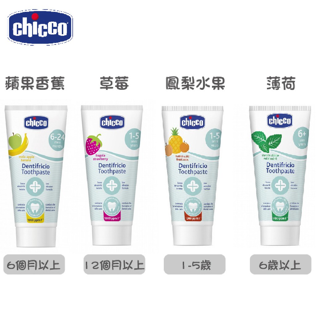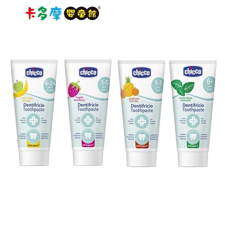 【Chicco】兒童木醣醇含氟牙膏 兒童牙膏 50ml-蘋果香蕉/水果草莓/薄荷/鳳梨水果|卡多摩