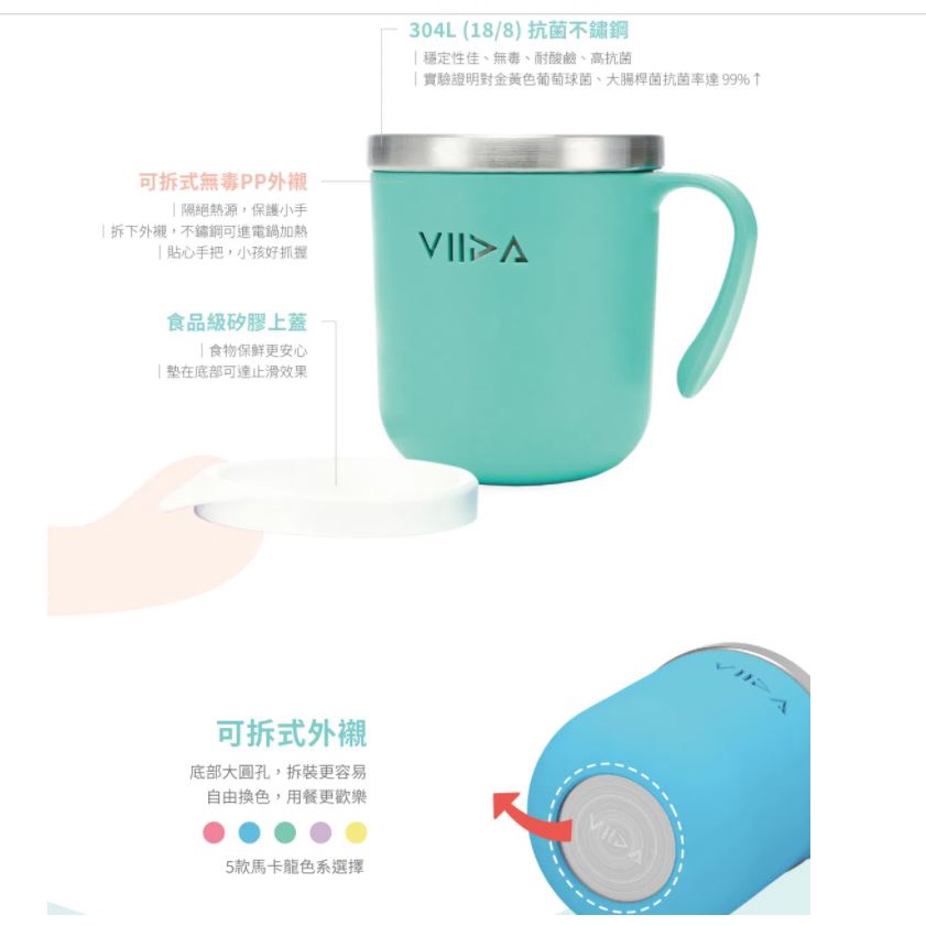 【VIIDA 】Soufflé 抗菌不鏽鋼兒童水杯/兒童餐具/學習杯/不鏽鋼杯-粉/藍/綠/黃/紫|卡多摩嬰童館