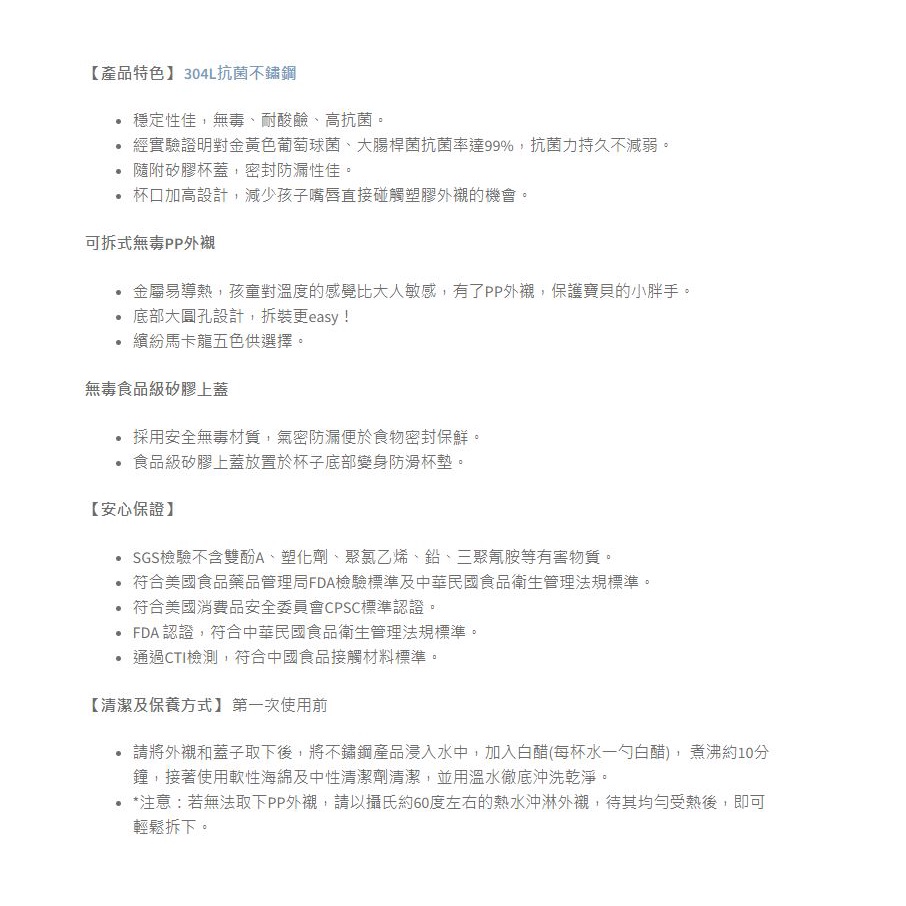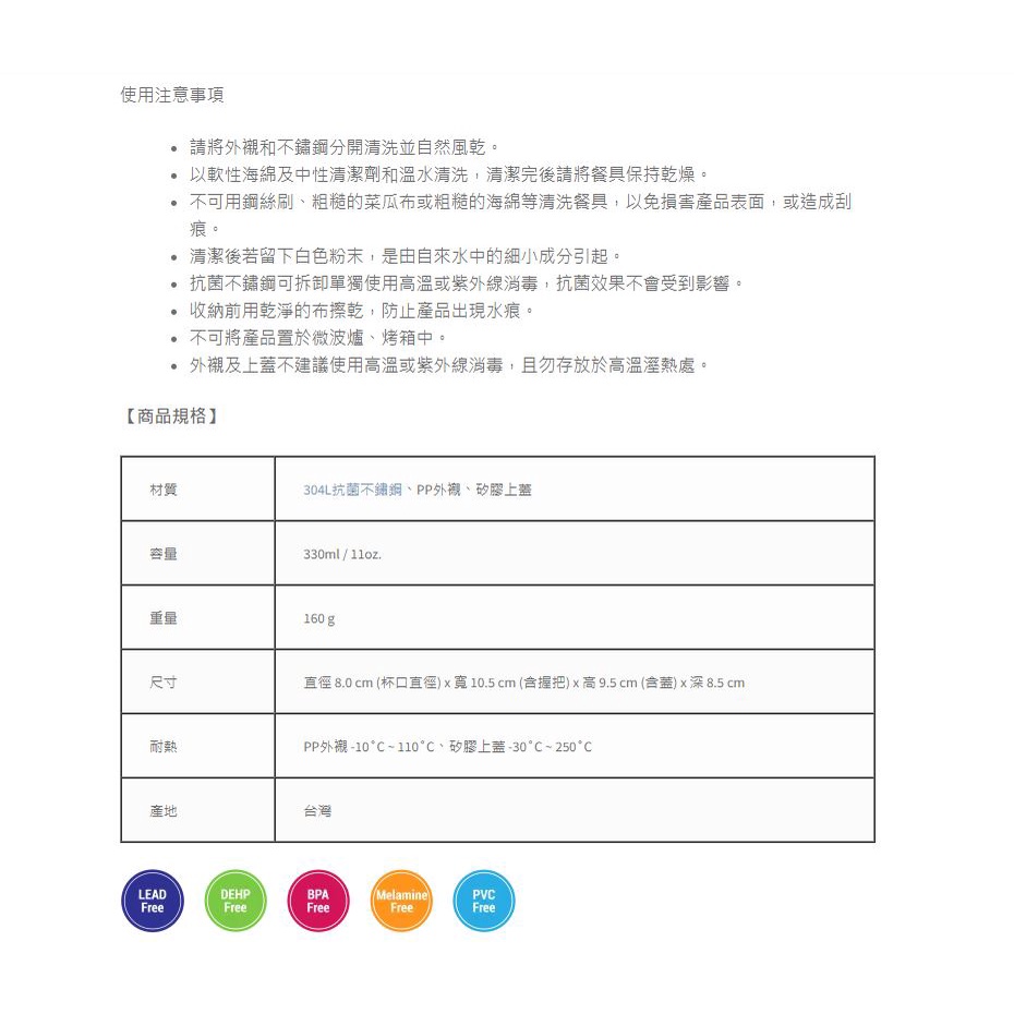 材質 304L抗菌不鏽鋼、PP外襯、矽膠上蓋