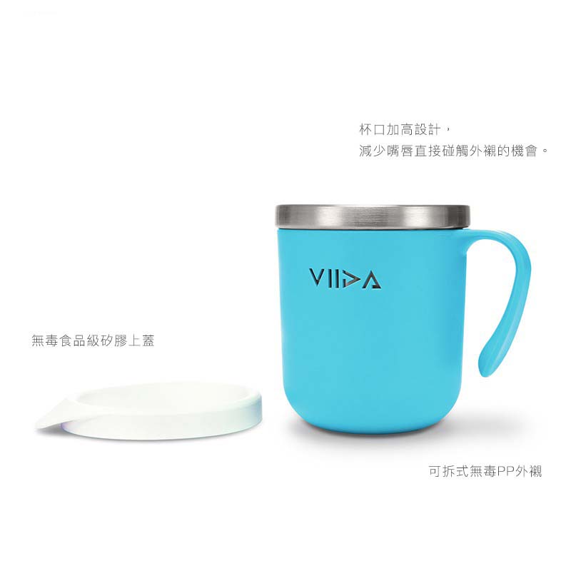 杯口加高設計,減少孩子嘴唇直接碰觸塑膠外襯的機會。