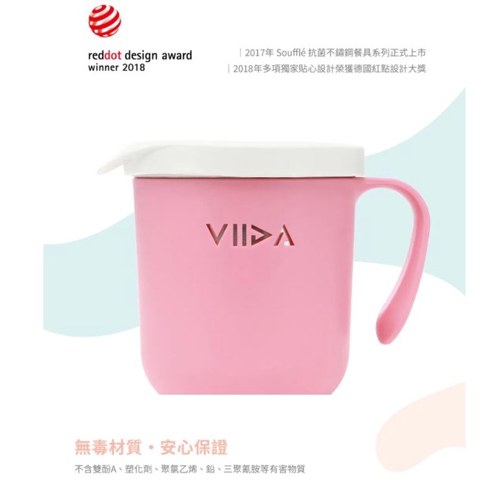 【VIIDA 】Soufflé 抗菌不鏽鋼兒童水杯/兒童餐具/學習杯/不鏽鋼杯-粉/藍/綠/黃/紫|卡多摩嬰童館