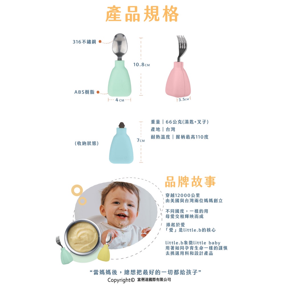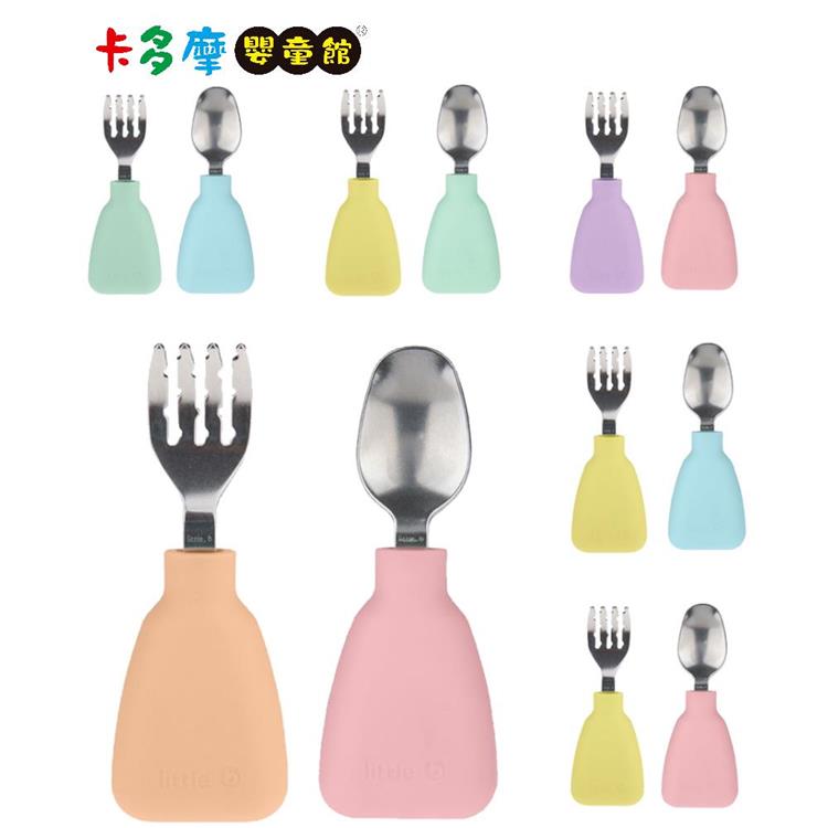 美國【 little.b-316不鏽鋼湯叉組 不鏽鋼湯匙 不鏽鋼叉子 不鏽鋼餐具 學習餐具 手握訓練 兒童餐具|卡多摩