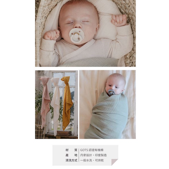 【丹麥BIBS】 Muslin 有機棉紗布包巾-象牙白/腮紅/灰綠/芥末黃|卡多摩