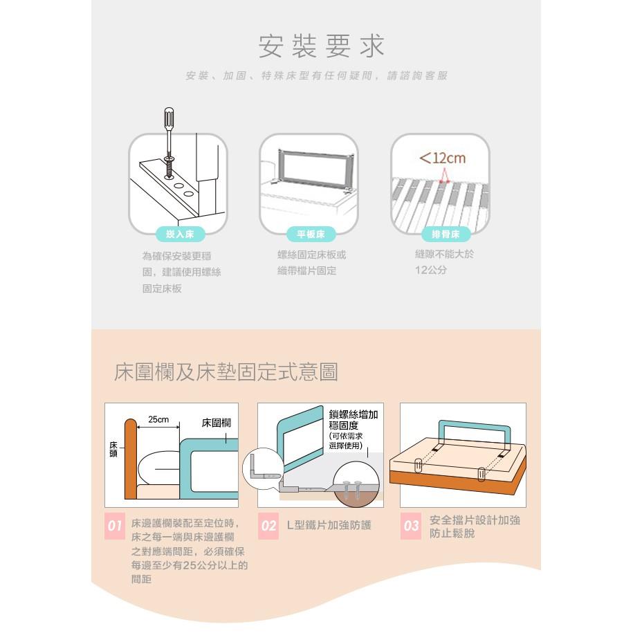 8.本產品不適用於雙層床、水床、氣墊床及嬰兒床。