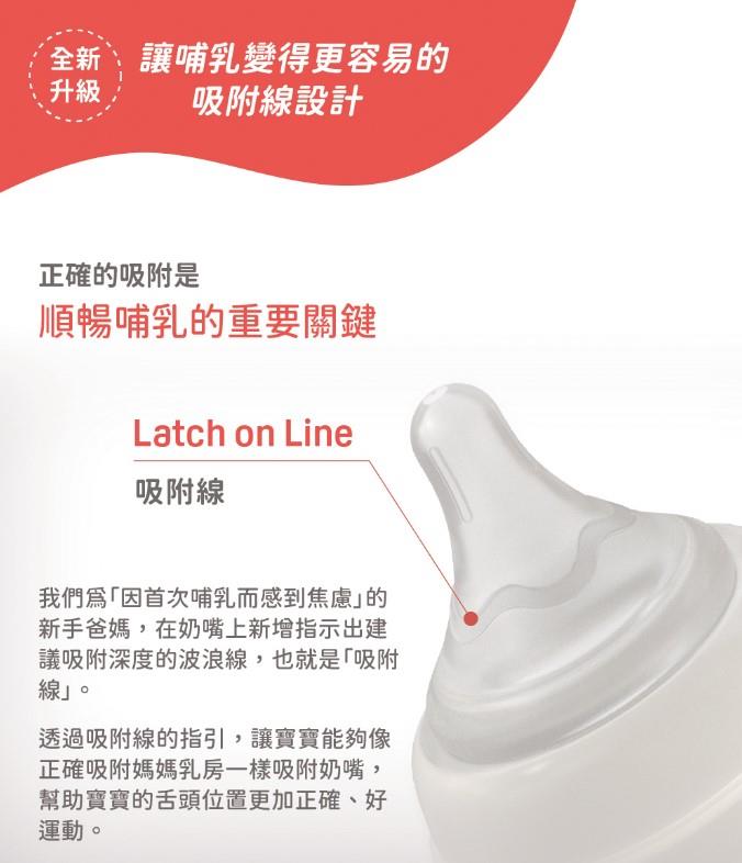 1.新增「吸附線」:新增建議寶寶吸附深度指示波浪線,協助寶寶正確吸附,即使是新手爸媽哺乳也無需焦慮。