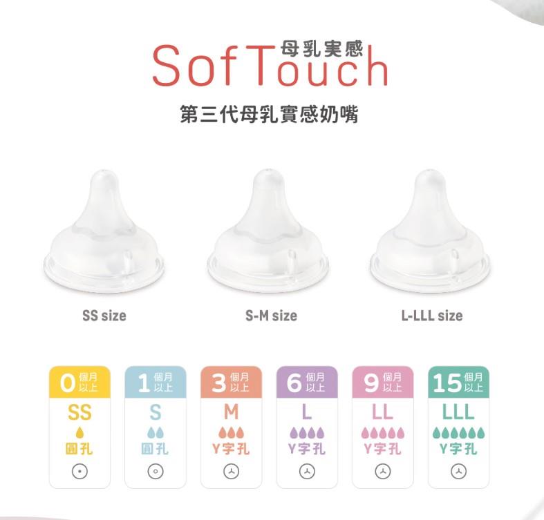 3.量身打造六種尺寸奶嘴:針對不同成長階段,我們量身打造了不同孔徑形狀、大小、軟硬度及吸附線尺寸的六款奶嘴,貼近寶寶個別的需要。