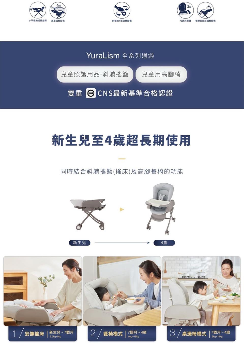 備註>通過「兒童照護用品-斜躺搖籃」及「兒童用高腳椅」雙重CNS最新基準合格認證