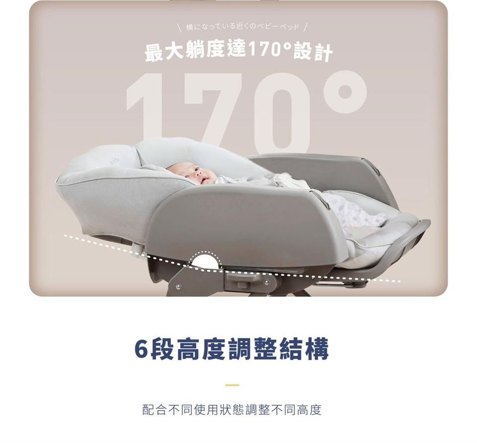 無論寶寶休息或用餐,高度皆有6段可供調整,並能輕鬆自由的移動,讓寶寶隨時隨地都可以在視線範圍內。
