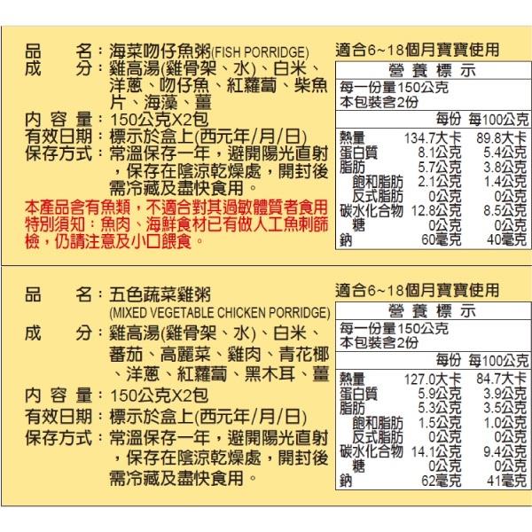 成分: 雞高湯,白米,洋蔥, 吻仔魚,紅蘿蔔, 柴魚片,海藻,薑