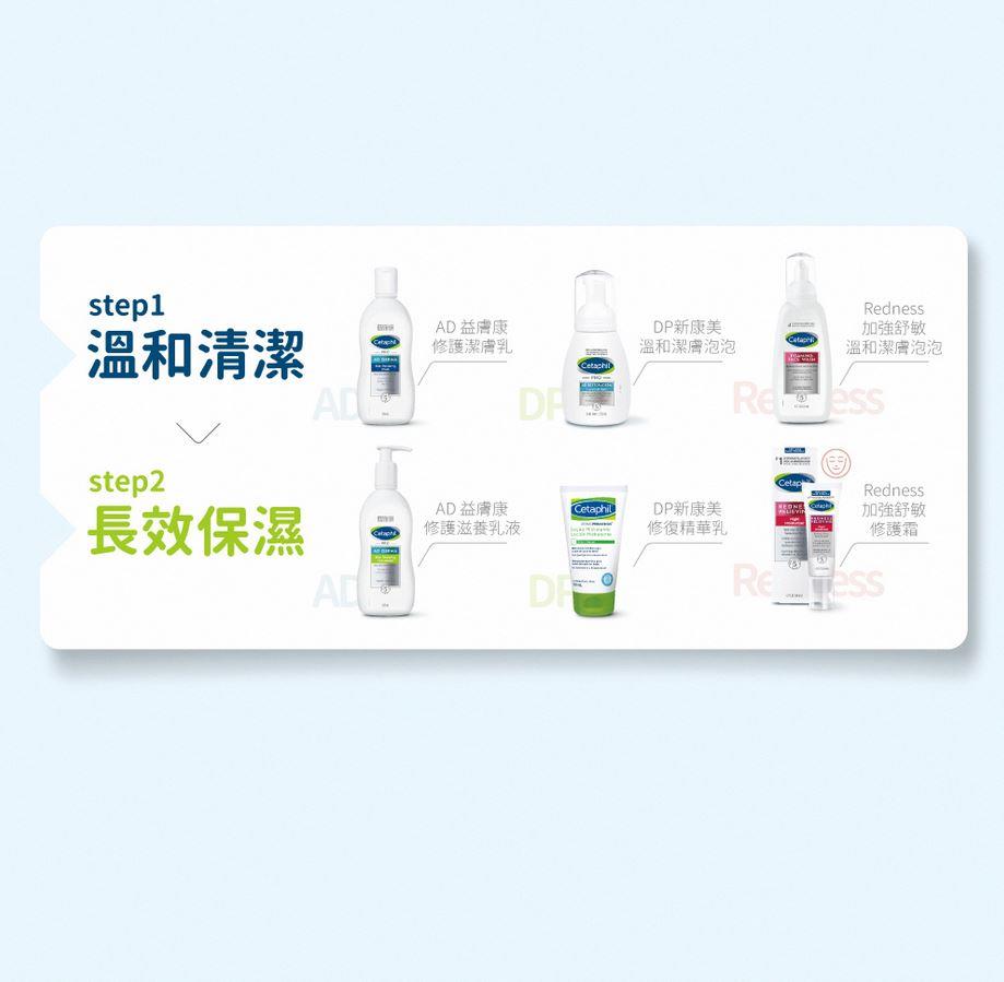 清潔、舒緩、修護、保濕、潤膚五合一;每天持續使用,可有效改善肌膚乾粗。
