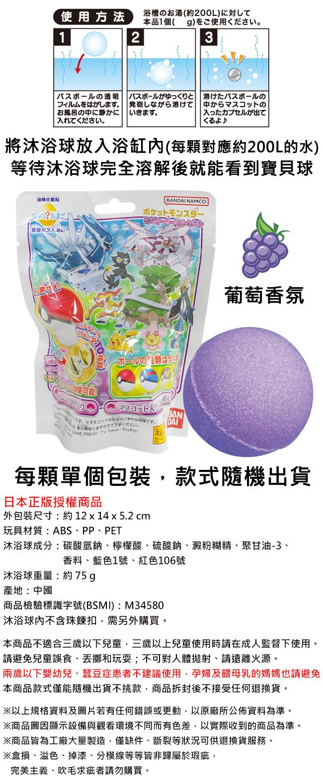 兩入一組 寶可夢 寶貝球造型 沐浴球 P7 葡萄香氛 泡澡劑 入浴球 泡澡球 皮卡丘 款式隨機