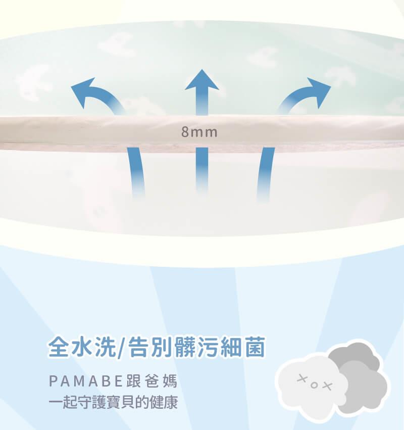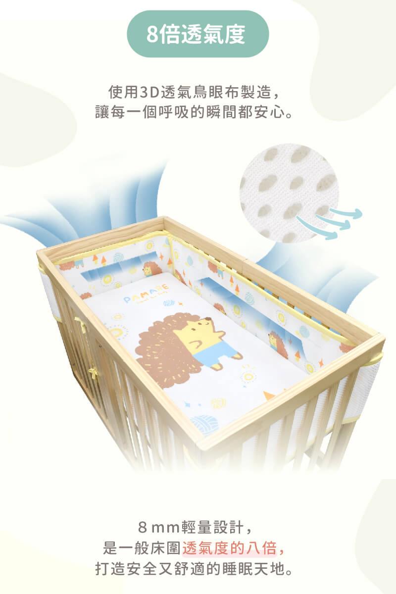 8mm輕量設計:是一般床圍透氣度的八倍,打造寶寶安全又舒適的睡眠天地