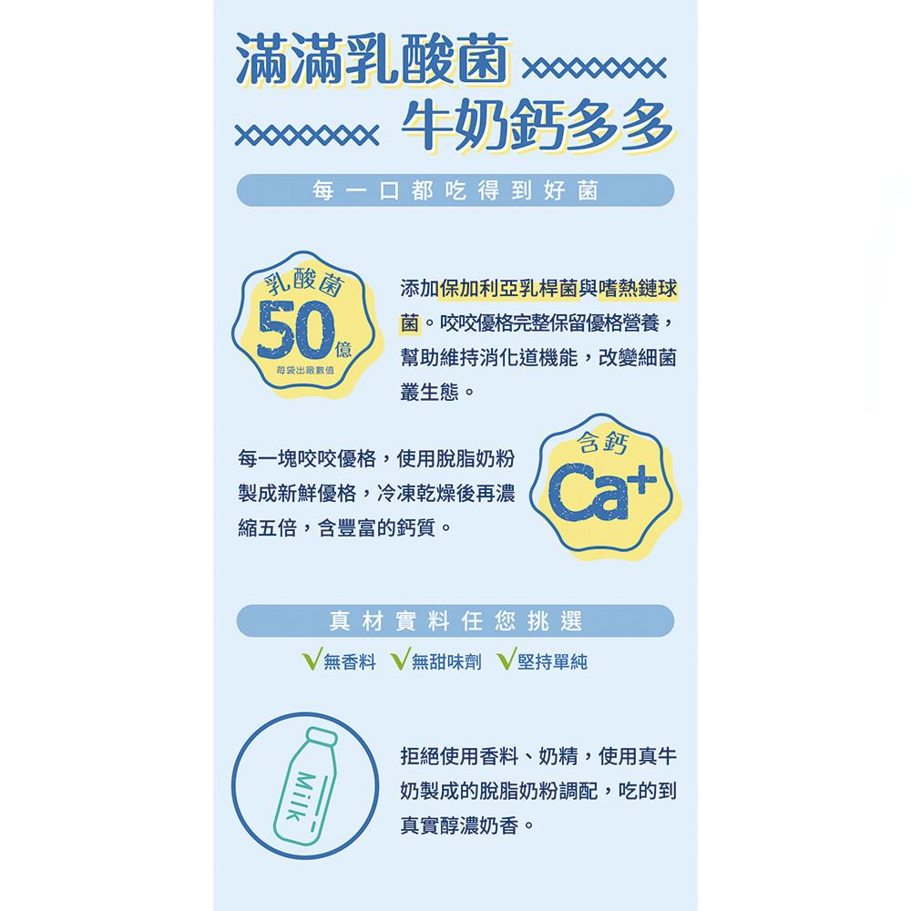 內容物:冷凍乾燥優格塊-原味(優格(脫脂奶粉、保加利亞乳桿菌、嗜熱鏈球菌)、砂糖)