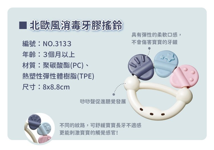 ❣️不同的紋路,可舒緩寶寶長牙時的不適,更能刺激寶寶的觸覺感官哦!