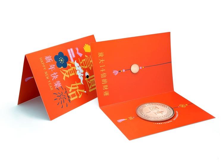 過年到了 賽先生準備了大小硬幣的新年卡片祝福您
